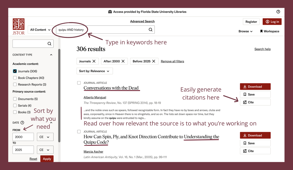 Use these "Logic Tags" in FSU Library databases to control your results: